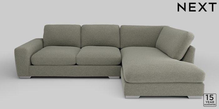 6.12.1 Buy Houghton Deep Relaxed Sit Large Corner Chaise - Right Hand Chunky Marl Light Olive Green Large Square Angle - Chrome Metal from the Next UK online shop Click here to use our accessible website