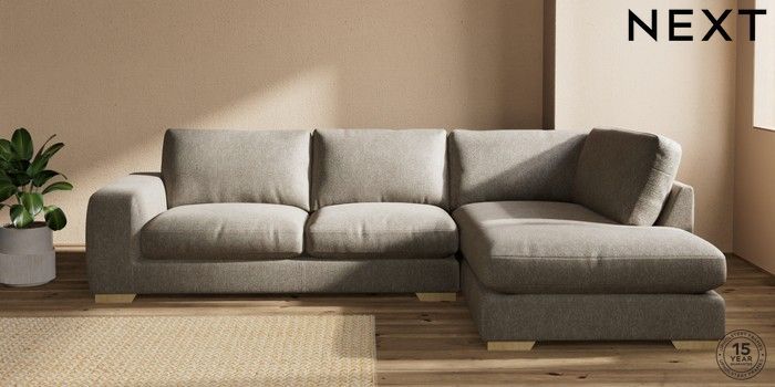 7.0.3 Buy Houghton Deep Relaxed Sit Large Corner Chaise - Right Hand Cotswold Chenille Mid Mink Brown Large Square Angle - Light from the Next UK online shop Click here to use our accessible website