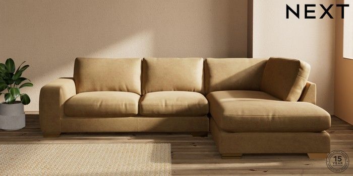 7.0.3 Buy Houghton Deep Relaxed Sit Large Corner Chaise - Right Hand Luxe Chenille Honey Yellow Large Square Angle - Brushed Brass from the Next UK online shop Click here to use our accessible website