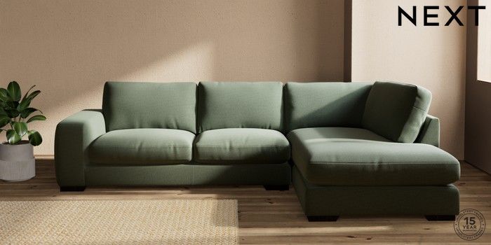 6.12.13 Buy Houghton Deep Relaxed Sit Large Corner Chaise - Right Hand Relaxed Linen Look Dark Green Large Square Angle - Dark from the Next UK online shop Click here to use our accessible website