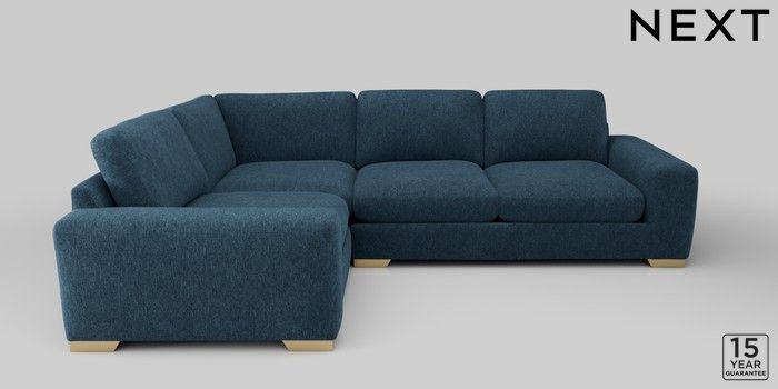 6.12.1 Buy Houghton Deep Relaxed Sit Large Corner Sofa - Left Hand Cotswold Chenille Dark Blue Large Square Angle - Brushed Brass from the Next UK online shop Click here to use our accessible website