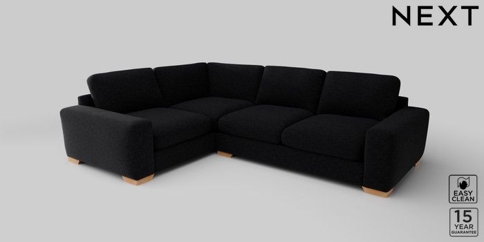6.12.1 Buy Houghton Deep Relaxed Sit Large Corner Sofa - Left Hand Fine Chenille Easy Clean Black Large Square Angle - Light from the Next UK online shop Click here to use our accessible website