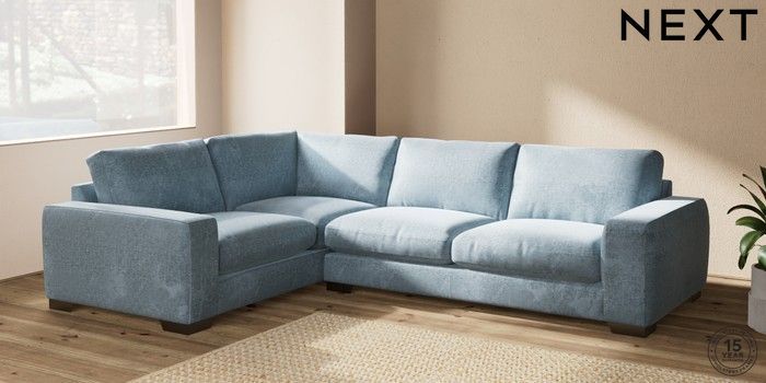 7.2.6 Buy Houghton Deep Relaxed Sit Large Corner Sofa - Left Hand Plush Chenille Light Blue Large Square Angle - Gunmetal from the Next UK online shop Click here to use our accessible website