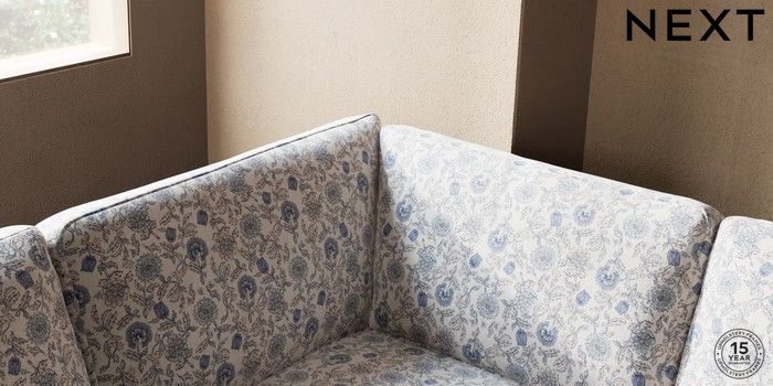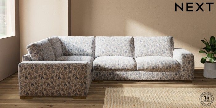 7.3.1 Buy Houghton Deep Relaxed Sit Large Corner Sofa - Left Hand Relaxed Linen Look Print Woodblock Floral Blue Large Square Angle - Mid from the Next UK online shop Click here to use our accessible website