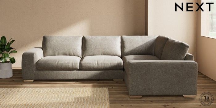 7.0.3 Buy Houghton Deep Relaxed Sit Large Corner Sofa - Right Hand Cotswold Chenille Mid Mink Brown Large Square Angle - Chrome Metal from the Next UK online shop Click here to use our accessible website