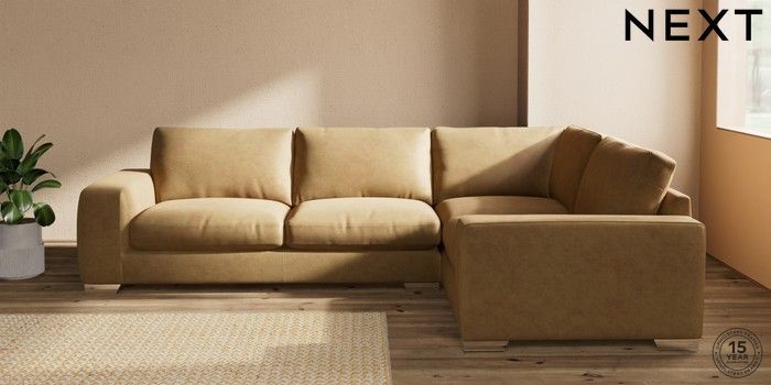 7.0.3 Buy Houghton Deep Relaxed Sit Large Corner Sofa - Right Hand Luxe Chenille Honey Yellow Large Square Angle - Chrome Metal from the Next UK online shop Click here to use our accessible website