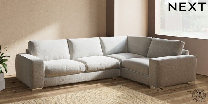 7.2.6 Buy Houghton Deep Relaxed Sit Large Corner Sofa - Right Hand Multi Weave Light Blue Large Square Angle - Chrome Metal from the Next UK online shop Click here to use our accessible website