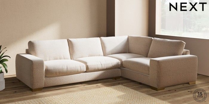 7.2.6 Buy Houghton Deep Relaxed Sit Large Corner Sofa - Right Hand Multi Weave Mid Natural Large Square Angle - Brushed Brass from the Next UK online shop Click here to use our accessible website