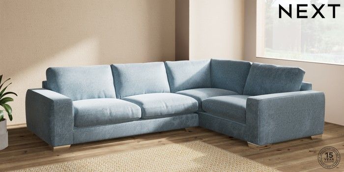 7.2.6 Buy Houghton Deep Relaxed Sit Large Corner Sofa - Right Hand Plush Chenille Light Blue Large Square Angle - Chrome Metal from the Next UK online shop Click here to use our accessible website