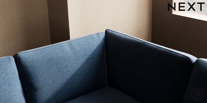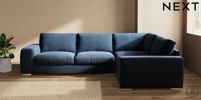7.0.3 Buy Houghton Deep Relaxed Sit Large Corner Sofa - Right Hand Ripple Chenille Dark Blue Large Square Angle - Chrome Metal from the Next UK online shop Click here to use our accessible website