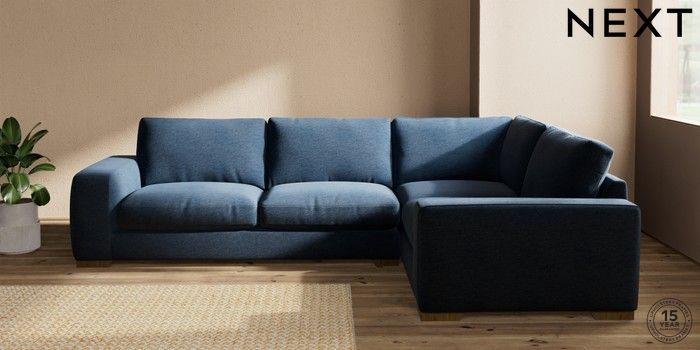 7.0.3 Buy Houghton Deep Relaxed Sit Large Corner Sofa - Right Hand Ripple Chenille Dark Blue Large Square Angle - Mid from the Next UK online shop Click here to use our accessible website