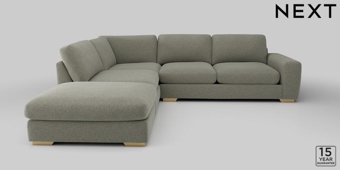 6.12.1 Buy Houghton Deep Relaxed Sit Large Open End Corner Chaise - Left Hand Chunky Marl Light Olive Green Large Square Angle - Brushed Brass from the Next UK online shop Click here to use our accessible website