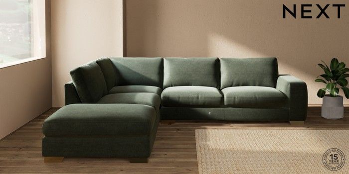 7.0.3 Buy Houghton Deep Relaxed Sit Large Open End Corner Chaise - Left Hand Luxe Chenille Mid Green Large Square Angle - Brushed Brass from the Next UK online shop Click here to use our accessible website