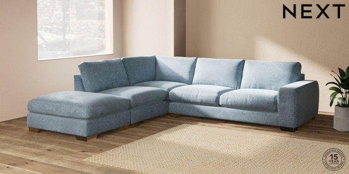 7.2.6 Buy Houghton Deep Relaxed Sit Large Open End Corner Chaise - Left Hand Plush Chenille Light Blue Large Square Angle - Brushed Brass from the Next UK online shop Click here to use our accessible website