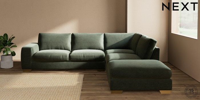7.0.3 Buy Houghton Deep Relaxed Sit Large Open End Corner Chaise - Right Hand Luxe Chenille Mid Green Large Square Angle - Brushed Brass from the Next UK online shop Click here to use our accessible website