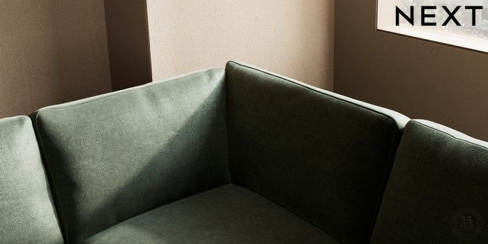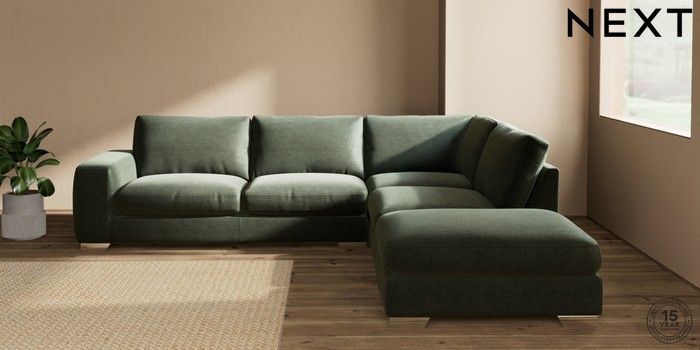 7.0.3 Buy Houghton Deep Relaxed Sit Large Open End Corner Chaise - Right Hand Luxe Chenille Mid Green Large Square Angle - Chrome Metal from the Next UK online shop Click here to use our accessible website