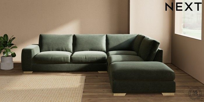 7.0.3 Buy Houghton Deep Relaxed Sit Large Open End Corner Chaise - Right Hand Luxe Chenille Mid Green Large Square Angle - Light from the Next UK online shop Click here to use our accessible website