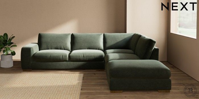 7.0.3 Buy Houghton Deep Relaxed Sit Large Open End Corner Chaise - Right Hand Luxe Chenille Mid Green Large Square Angle - Mid from the Next UK online shop Click here to use our accessible website