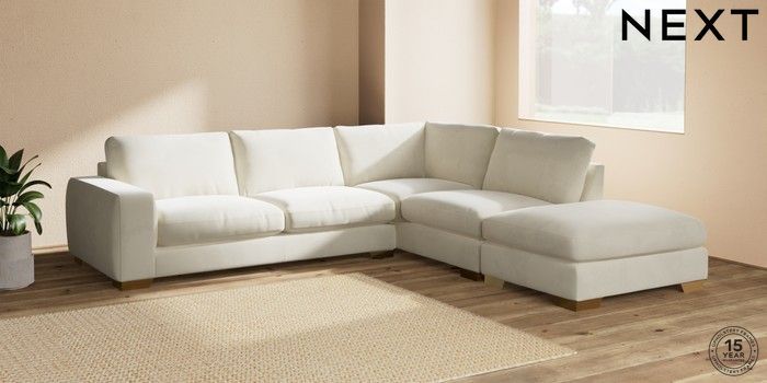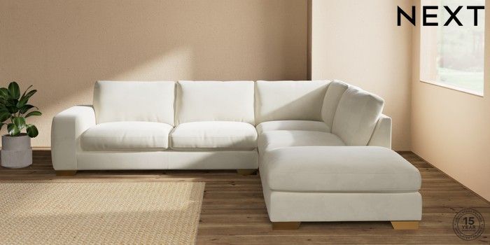 7.0.3 Buy Houghton Deep Relaxed Sit Large Open End Corner Chaise - Right Hand Luxe Chenille Oyster Large Square Angle - Brushed Brass from the Next UK online shop Click here to use our accessible website