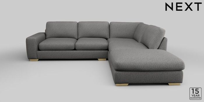 6.12.1 Buy Houghton Deep Relaxed Sit Large Open End Corner Chaise - Right Hand Tweedy Chenille Dark Grey Large Square Angle - Brushed Brass from the Next UK online shop Click here to use our accessible website