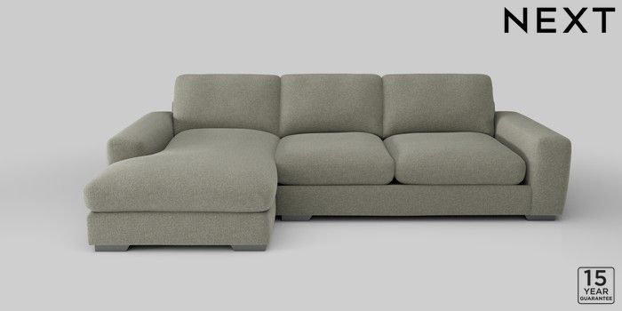 6.12.1 Buy Houghton Deep Relaxed Sit Large Sofa Chaise - Left Hand Chunky Marl Light Olive Green Large Square Angle - Gunmetal from the Next UK online shop Click here to use our accessible website