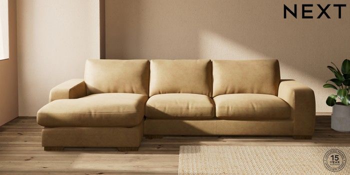 7.0.3 Buy Houghton Deep Relaxed Sit Large Sofa Chaise - Left Hand Luxe Chenille Honey Yellow Large Square Angle - Mid from the Next UK online shop Click here to use our accessible website