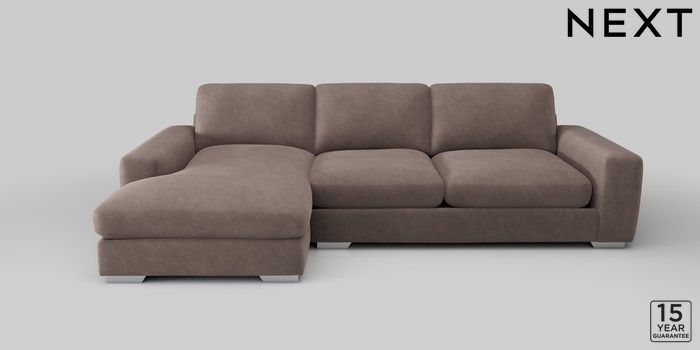 6.12.1 Buy Houghton Deep Relaxed Sit Large Sofa Chaise - Left Hand Luxe Chenille Mink Brown Large Square Angle - Chrome Metal from the Next UK online shop Click here to use our accessible website