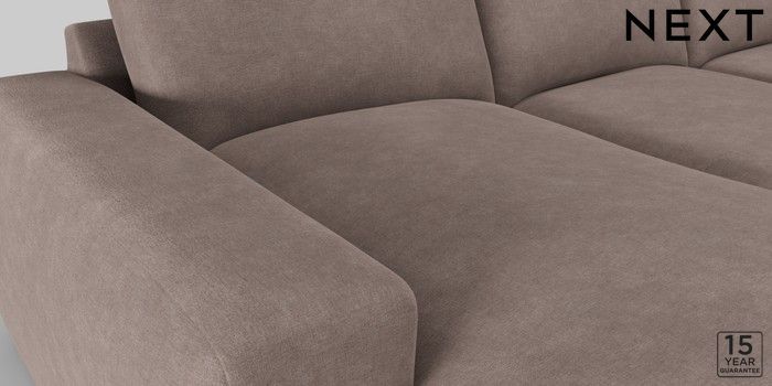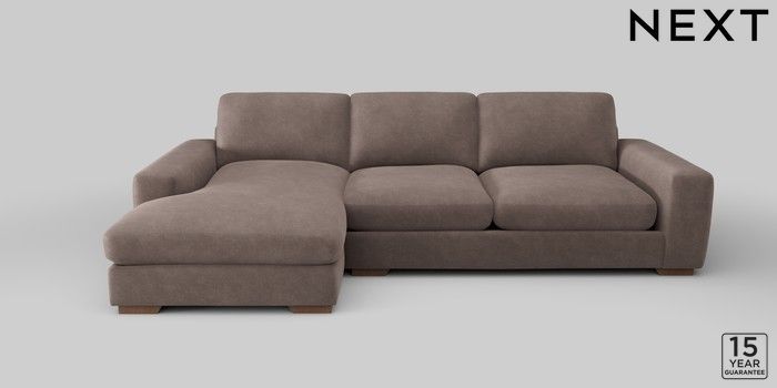 6.12.1 Buy Houghton Deep Relaxed Sit Large Sofa Chaise - Left Hand Luxe Chenille Mink Brown Large Square Angle - Mid from the Next UK online shop Click here to use our accessible website