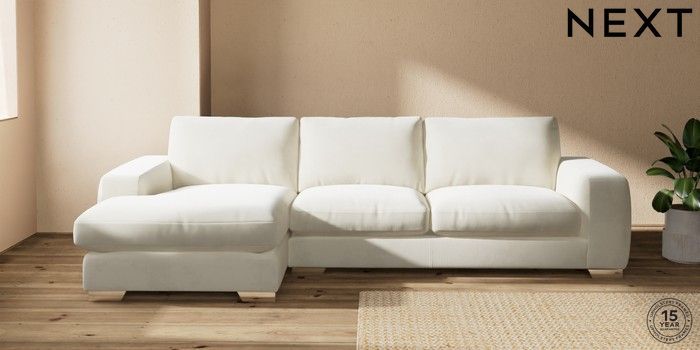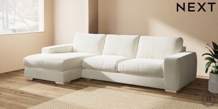 7.0.3 Buy Houghton Deep Relaxed Sit Large Sofa Chaise - Left Hand Luxe Chenille Oyster Large Square Angle - Chrome Metal from the Next UK online shop Click here to use our accessible website