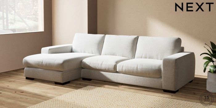7.2.6 Buy Houghton Deep Relaxed Sit Large Sofa Chaise - Left Hand Multi Weave Light Blue Large Square Angle - Dark from the Next UK online shop Click here to use our accessible website