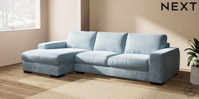 7.2.6 Buy Houghton Deep Relaxed Sit Large Sofa Chaise - Left Hand Plush Chenille Light Blue Large Square Angle - Dark from the Next UK online shop Click here to use our accessible website