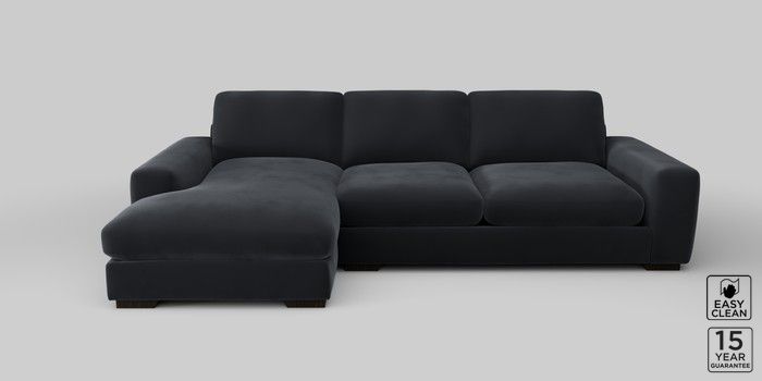 6.12.1 Buy Houghton Deep Relaxed Sit Large Sofa Chaise - Left Hand Plush Velvet Easy Clean Charcoal Grey Large Square Angle - Dark from the Next UK online shop Click here to use our accessible website