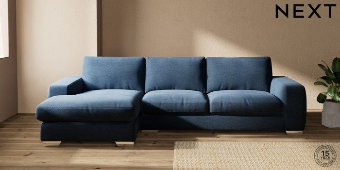 7.0.3 Buy Houghton Deep Relaxed Sit Large Sofa Chaise - Left Hand Ripple Chenille Dark Blue Large Square Angle - Chrome Metal from the Next UK online shop Click here to use our accessible website