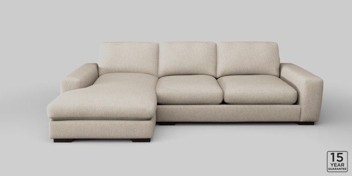 6.12.1 Buy Houghton Deep Relaxed Sit Large Sofa Chaise - Left Hand Tweedy Chenille Mid Natural Large Square Angle - Dark from the Next UK online shop Click here to use our accessible website