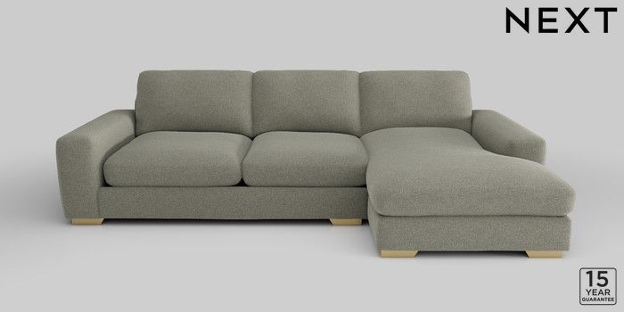 6.12.1 Buy Houghton Deep Relaxed Sit Large Sofa Chaise - Right Hand Chunky Marl Light Olive Green Large Square Angle - Brushed Brass from the Next UK online shop Click here to use our accessible website