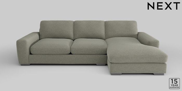 6.12.1 Buy Houghton Deep Relaxed Sit Large Sofa Chaise - Right Hand Chunky Marl Light Olive Green Large Square Angle - Gunmetal from the Next UK online shop Click here to use our accessible website