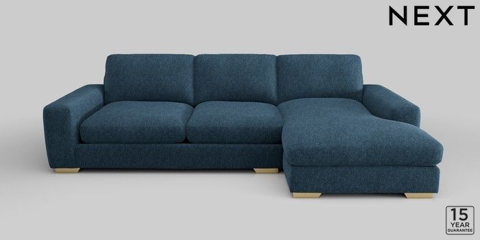 6.12.1 Buy Houghton Deep Relaxed Sit Large Sofa Chaise - Right Hand Cotswold Chenille Dark Blue Large Square Angle - Brushed Brass from the Next UK online shop Click here to use our accessible website
