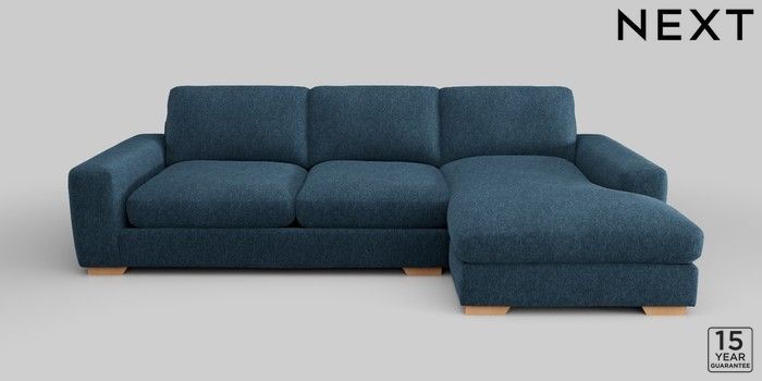 6.12.1 Buy Houghton Deep Relaxed Sit Large Sofa Chaise - Right Hand Cotswold Chenille Dark Blue Large Square Angle - Light from the Next UK online shop Click here to use our accessible website