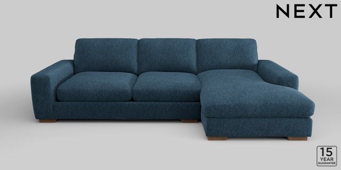 6.12.1 Buy Houghton Deep Relaxed Sit Large Sofa Chaise - Right Hand Cotswold Chenille Dark Blue Large Square Angle - Mid from the Next UK online shop Click here to use our accessible website
