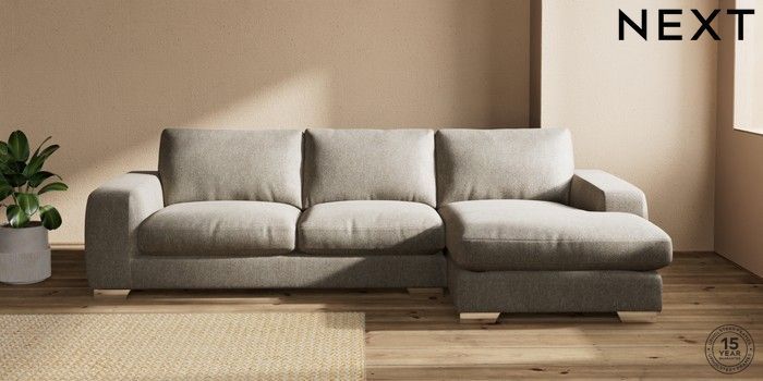 7.0.3 Buy Houghton Deep Relaxed Sit Large Sofa Chaise - Right Hand Cotswold Chenille Mid Mink Brown Large Square Angle - Chrome Metal from the Next UK online shop Click here to use our accessible website