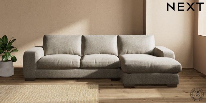 7.0.3 Buy Houghton Deep Relaxed Sit Large Sofa Chaise - Right Hand Cotswold Chenille Mid Mink Brown Large Square Angle - Gunmetal from the Next UK online shop Click here to use our accessible website
