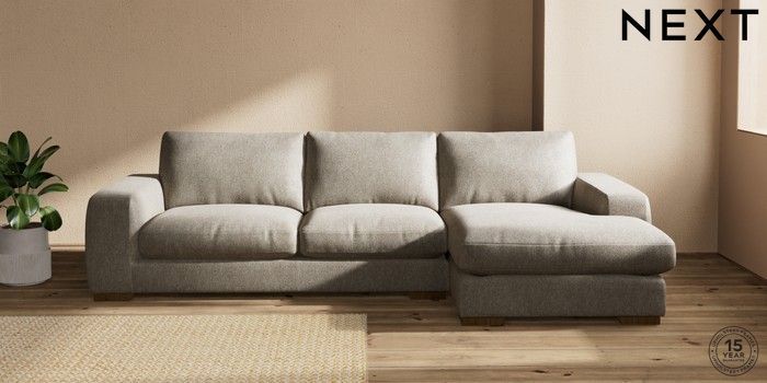 7.0.3 Buy Houghton Deep Relaxed Sit Large Sofa Chaise - Right Hand Cotswold Chenille Mid Mink Brown Large Square Angle - Mid from the Next UK online shop Click here to use our accessible website