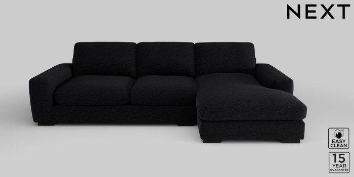 6.12.1 Buy Houghton Deep Relaxed Sit Large Sofa Chaise - Right Hand Fine Chenille Easy Clean Black Large Square Angle - Dark from the Next UK online shop Click here to use our accessible website