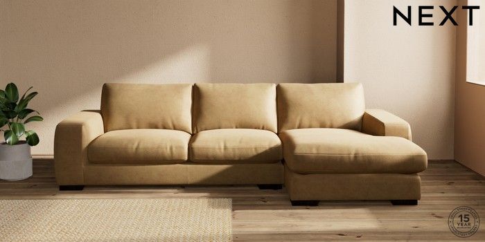 7.0.3 Buy Houghton Deep Relaxed Sit Large Sofa Chaise - Right Hand Luxe Chenille Honey Yellow Large Square Angle - Dark from the Next UK online shop Click here to use our accessible website