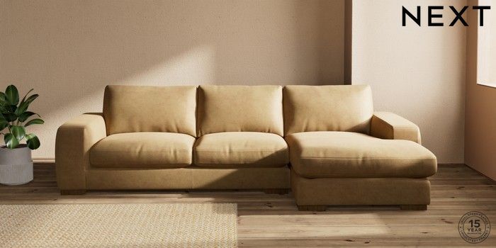 7.0.3 Buy Houghton Deep Relaxed Sit Large Sofa Chaise - Right Hand Luxe Chenille Honey Yellow Large Square Angle - Mid from the Next UK online shop Click here to use our accessible website