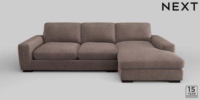 6.12.1 Buy Houghton Deep Relaxed Sit Large Sofa Chaise - Right Hand Luxe Chenille Mink Brown Large Square Angle - Dark from the Next UK online shop Click here to use our accessible website