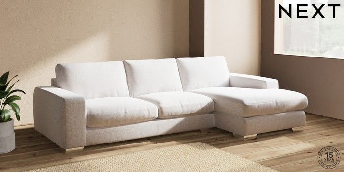 7.2.6 Buy Houghton Deep Relaxed Sit Large Sofa Chaise - Right Hand Multi Weave Oyster Large Square Angle - Chrome Metal from the Next UK online shop Click here to use our accessible website