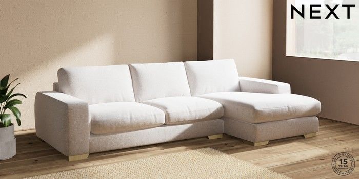 7.2.6 Buy Houghton Deep Relaxed Sit Large Sofa Chaise - Right Hand Multi Weave Oyster Large Square Angle - Light from the Next UK online shop Click here to use our accessible website