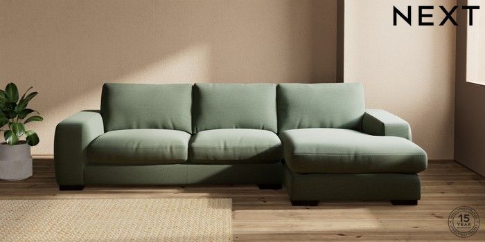 6.12.13 Buy Houghton Deep Relaxed Sit Large Sofa Chaise - Right Hand Relaxed Linen Look Dark Green Large Square Angle - Dark from the Next UK online shop Click here to use our accessible website