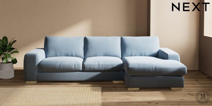 6.12.1 Buy Houghton Deep Relaxed Sit Large Sofa Chaise - Right Hand Relaxed Linen Look Mid Blue Large Square Angle - Light from the Next UK online shop Click here to use our accessible website